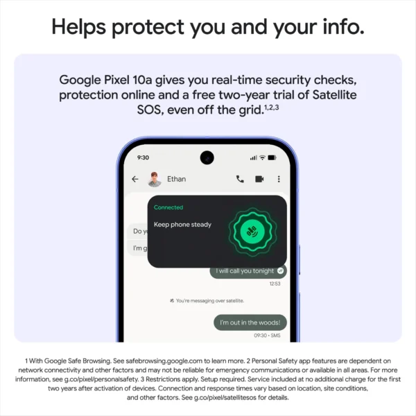Google Pixel 10a is designed to hold up against everyday scratches and spills thanks to IP68 water and dust protection, durable materials, and a tough Corning Gorilla Glass 7i display.