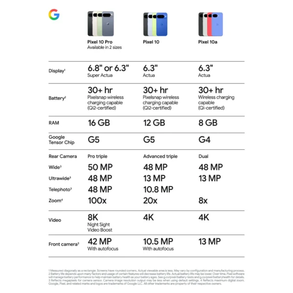 | Model | Google Pixel 10a |