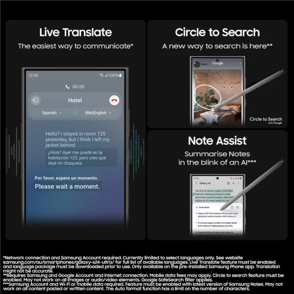 Leap into a new era of smartphone technology with Galaxy AI on the new Galaxy S24 Series. Do more effortlessly with Live Translate, Photo Assist and Note Assist, Powered by Galaxy AI.