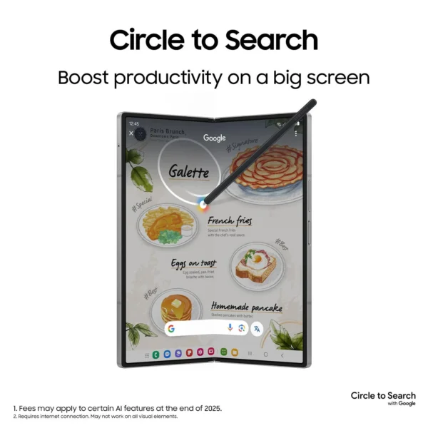 Make more of every moment with Galaxy Z Fold6. Enjoy a new age of productivity with a tablet-sized dual screen and Galaxy AI features. Get instant search results just by circling your screen with Circle to Search. You can even connect with new people who don’t speak the same language. Live Translate lets you listen to or read foreign languages in your preferred one, in real time during calls.